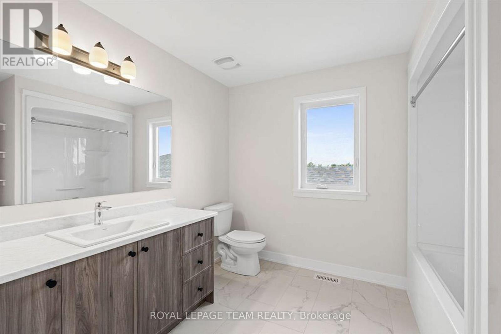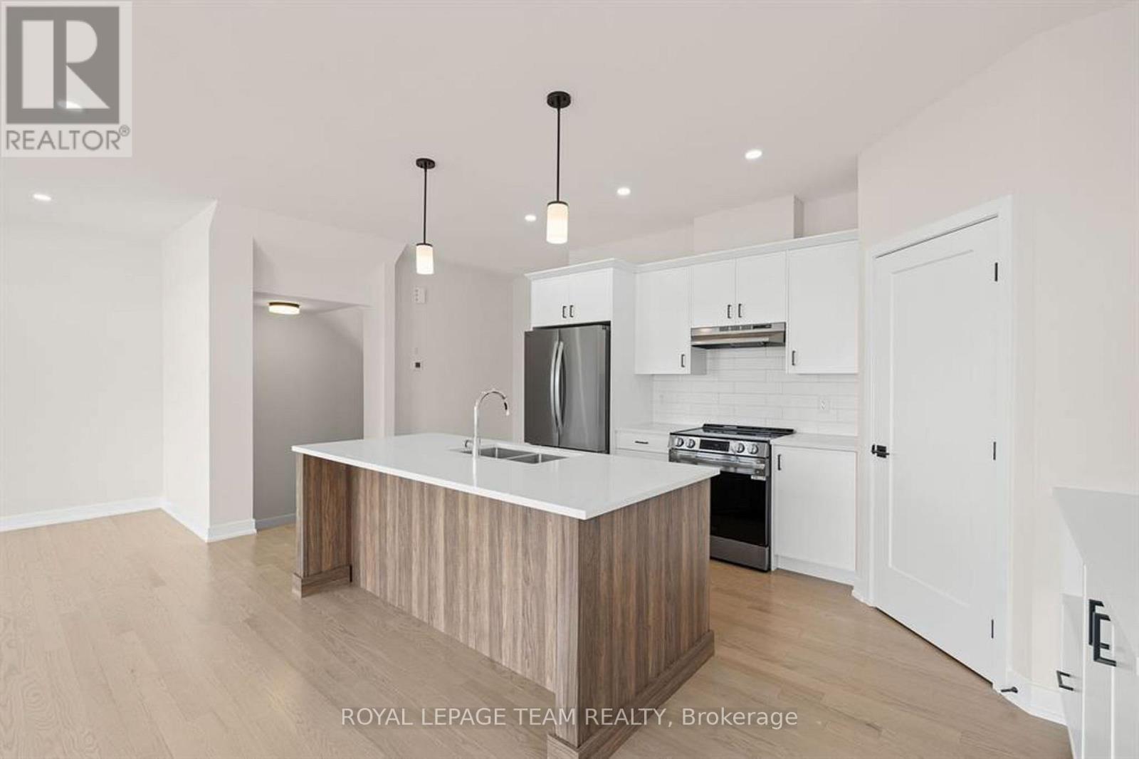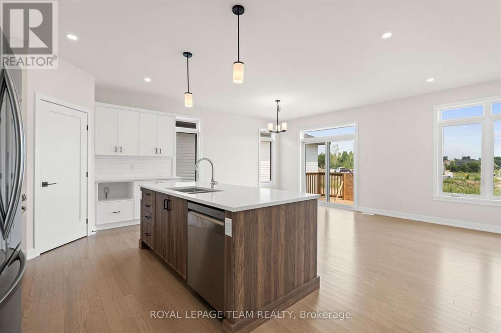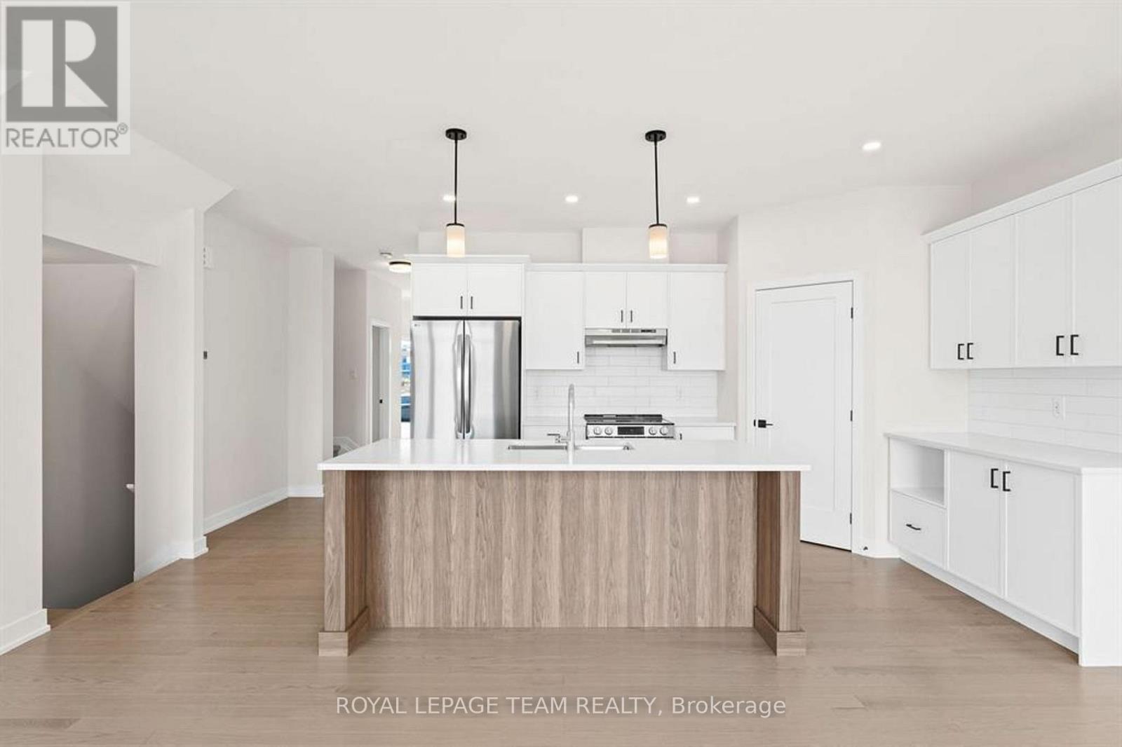 Discover this beautifully crafted semi-detached home in the sought-after Stirling Meadows community in Brockville. Available May 1, 2026, this newly built “Thornbury” model by Mackie Homes offers approximately 1,868 sq. ft. of thoughtfully designed living space, featuring 3 bedrooms, 3 bathrooms, and an oversized garage. The main floor welcomes you with a bright, open-concept layout designed for comfortable everyday living. The living and dining area features large windows, pot lighting, and hardwood flooring throughout, with direct access to the sun deck – perfect for relaxing or entertaining. The stylish kitchen blends form and function with quartz countertops, a subway tile backsplash, a centre island, a pantry, and stainless steel appliances. A convenient powder room completes the main level. Upstairs, the spacious primary suite includes a large walk-in closet and a 4-piece ensuite with a soaker tub and glass shower. Two additional bedrooms, a full bathroom, and a dedicated laundry room provide plenty of space and convenience for families or guests. Ideally located with quick access to Highway 401 and close to shopping, dining, and everyday amenities, this home offers the perfect balance of comfort, style, and convenience in one of Brockville’s newest communities. (id:13118)